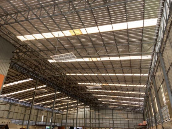 -โรงงานโครงเหล็ก สูงโปร่งไม่ร้อน ปิดมิดชิด ถนนกว้าง