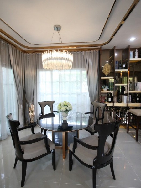 พื้นที่ 68 ตารางวา พื้นที่ใช้สอย 180-200 ตารางเมตร ขนาด 4 ห้องนอน 4 ห้องน้ำ 1 ห้องครัว 1 ห้องเก็บของ 1 ห้องพระ 1 ห้องซักรีด ที่จอดรถ 2 คัน การตกแต่ง พื้นชั้นล่างปูกระเบื้อง พื้นชั้นลาปูลามิเนต แอร์ 3 ตัว ห้องน้ำกั้นโซนเปียกแห้ง ตกแต่งหรูหรา มีบ่อปลา น้ำตกสวยงาม การเดินทางสะดวก เข้าออกทั้งทางถนนเกษตร-นวมินทร์ ถนนประเสริฐมนูกิจ เลียบด่วนรามอินทรา