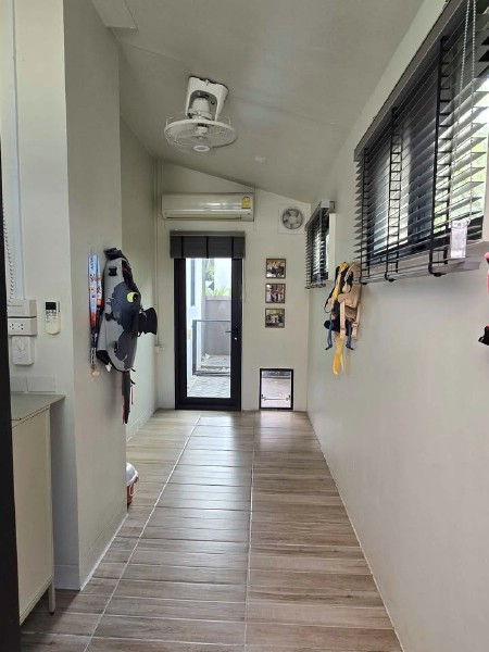 - 3 ห้องนอน 1 ห้องทำงาน 1 ห้องอเนกประสงค์ 1 ห้องแม่บ้าน 1 ห้องนั่งเล่น 1 ห้องครัว 3 ห้องน้ำ ห้องแม่บ้านแยกทางเข้าต่างหากจากบ้านใหญ่ ไม่มีห้องน้ำในตัว ที่จอดรถในบ้านได้ 2 คัน หน้าบ้าน 2 คัน