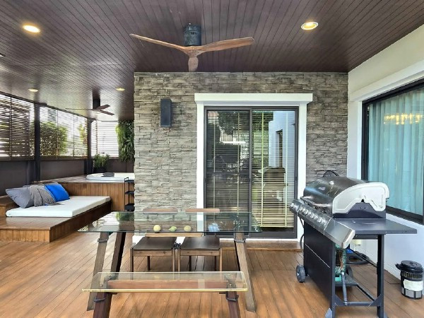- พื้นที่ outdoor กว้าง มีลานทานข้าว ที่นอนนั่งเล่น ปิ้ง BBQ (มี outdoor BBQ grill ขนาดใหญ่อย่างดีให้) และมี outdoor jacuzzi