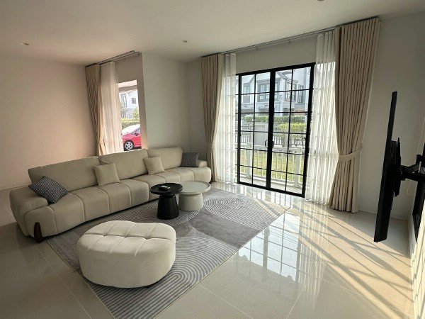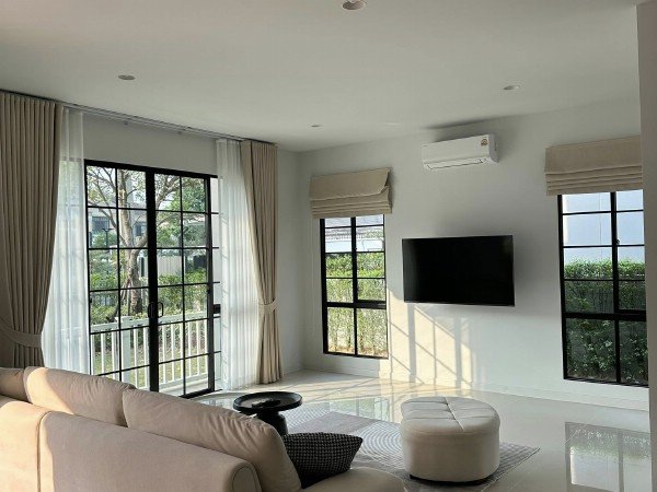 H 3032 ให้เช่าบ้านบ้านหรูสไตลยุโรปย่านแฟชั่นไอสแลนด โครงการบุราสิริ ปัญญาอินทรา หมู่บ้านอยู่ติดถนนปัญญารามอินทราแขวงบางชัน เขตคลองสามวา กรุงเทพมหานคร