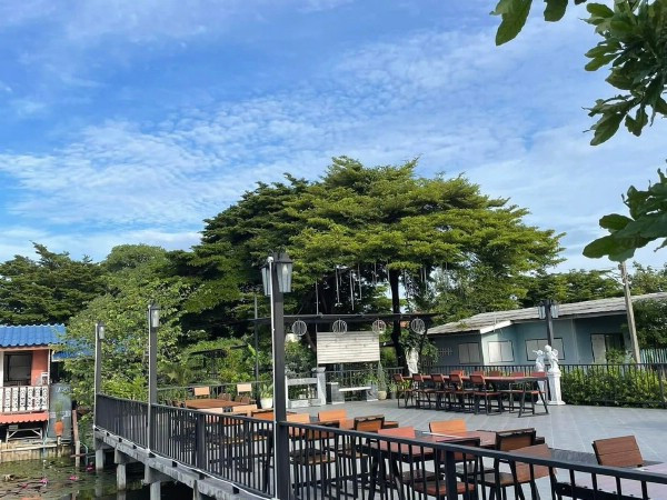 -พื้นที่ริมน้ำ ข้างหลังมีสระบัว